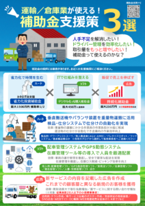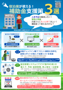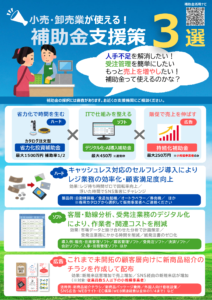 中小企業基盤整備機構より、「人手不足」「業務効率化」「販路開拓」などの課題に対し、実際の導入例、導入効果、活用できる補助金の種類等を業種別に、分かりやすくまとめたチラシを作成されましたのでお知らせいたします。